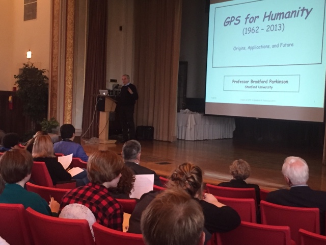 | Students heard from Professor Bradford Parkinson, father of GPS technology |